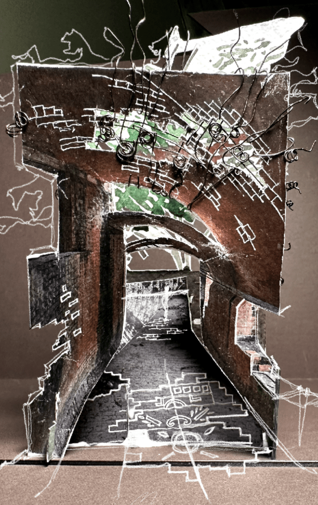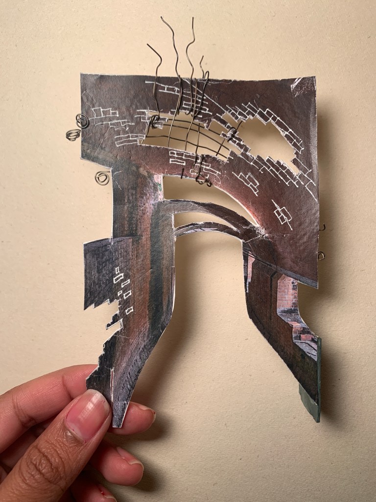 “Estas maquetas de collage fotográfico reimaginan la desafortunada Escuela de Ballet diseñada por el Vittorio Garatti. Provienen de una conversación entre una arquitecta especializada en Conservación (Kareem) y un fotógrafo de arquitectura (Abreu) y visualizan lo que alguna vez fue el inalcanzable sueño en la arquitectura cubana. La Escuela de Ballet, parte de la Escuela Nacional de Arte encargada por Fidel Castro, buscaba la belleza por encima de la utilidad, pero quedó inacabada y ahora son ruinas inquietantes. Inspirado en las estructuras autoconstruidas en el barrio Centro Habana, surgió el concepto de arquitectura de autoayuda como herramienta de conservación. Propone un esfuerzo colaborativo que involucra a estudiantes, ciudadanos y activistas de diseño para reconstruir la Escuela de Ballet utilizando materiales reciclados y fragmentos. El resultado reflejaría una identidad híbrida, similar a los autos clásicos modernizados que atraviesan La Habana. Este enfoque desafía la estética y las normas convencionales, encarnando la resiliencia de los habaneros. La herrería poco convencional y las diversas intervenciones constructivas combinan azulejos coloniales españoles con materiales encontrados, lo que representa la adaptabilidad de la comunidad. Las maquetas capturan la esencia de una comunidad vibrante e ingeniosa que revitaliza una joya arquitectónica, que muestra la cambiante identidad y dedicación de La Habana a la preservación cultural.”